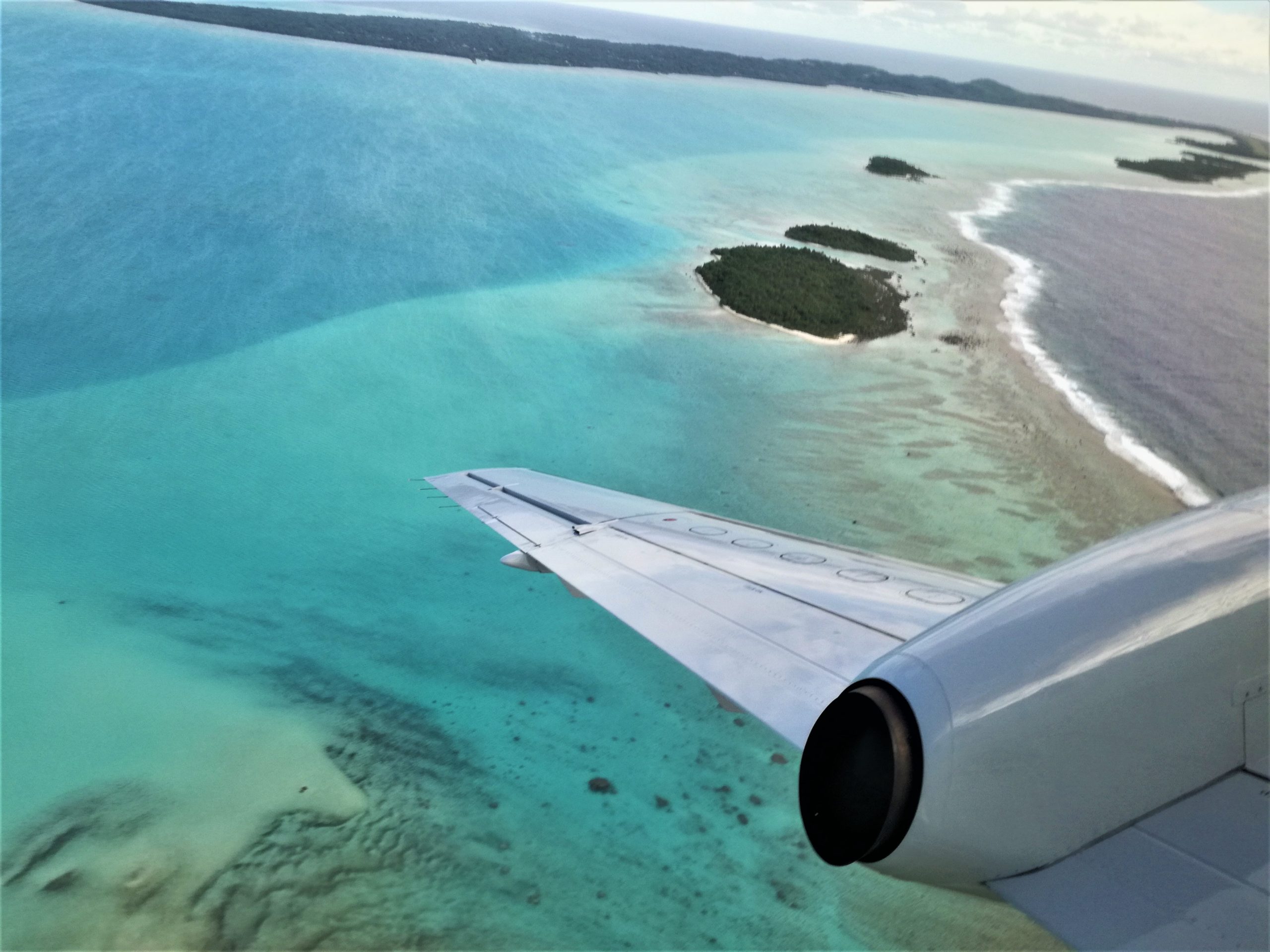 L’humeur est à la légèreté et à la bonne ambiance. Il ne me reste plus qu’un jour complet sur les îles Cook. Demain, je décolle au petit matin vers Aitutaki, l’une des îles de l’archipel, située à 225 kilomètres de Rarotonga. Un vol de 50 minutes, compris avec le package que j’ai craqué, m’y emmène. J’hallucine. La vue depuis l’avion est à tomber par terre !